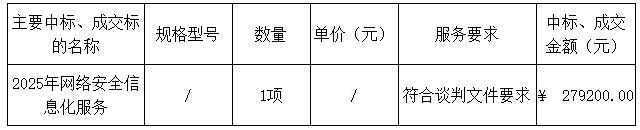 广东业信采购招标有限公司受阳西县人民法院的委托,于2025年9月16日就阳西县人民法院2025年网络安全信息化服务项目(项目编号:YXCG-20250901)进行谈判采购,现将本次采购结果公告如下: