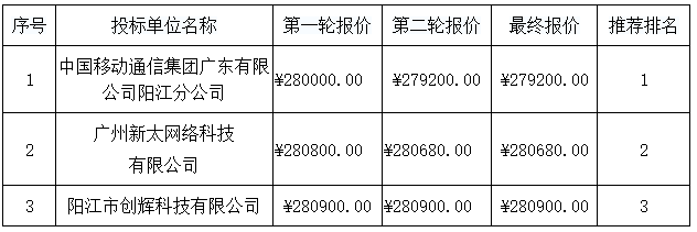 成交供应商名称:中国移动通信集团广东有限公司阳江分公司